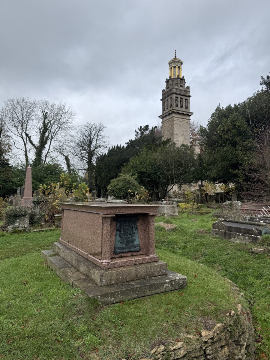 But then….there was a big gay scandal. It’s a hard one to write about, because we only know it from letters, but it seems that Beckford was caught in a bedroom of the Chief Justice’s house (oops!) with the justice’s nephew—the future Earl of Devon, William “Kitty” Courtenay—whom he was perhaps horse-whipping. Was this s&m? We don’t know, but it seems that Beckford had found out that Kitty, who was 8 years younger than Beckford but also clearly gay, had written a love letter to someone else. We’re not sure, but in any case, high society shunned Beckford from that moment on. At first he lived in self-imposed exile in Portugal, but eventually he returned to England, and after selling Fonthill Abbey, he built himself this tower just outside Bath, in an estate that is now a historic cemetery. But the tower is still there, and there are exhibits about Beckford, with some of his original furniture etc.